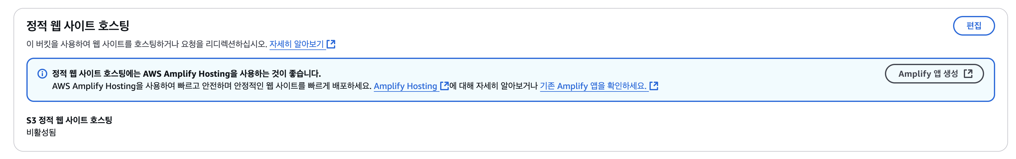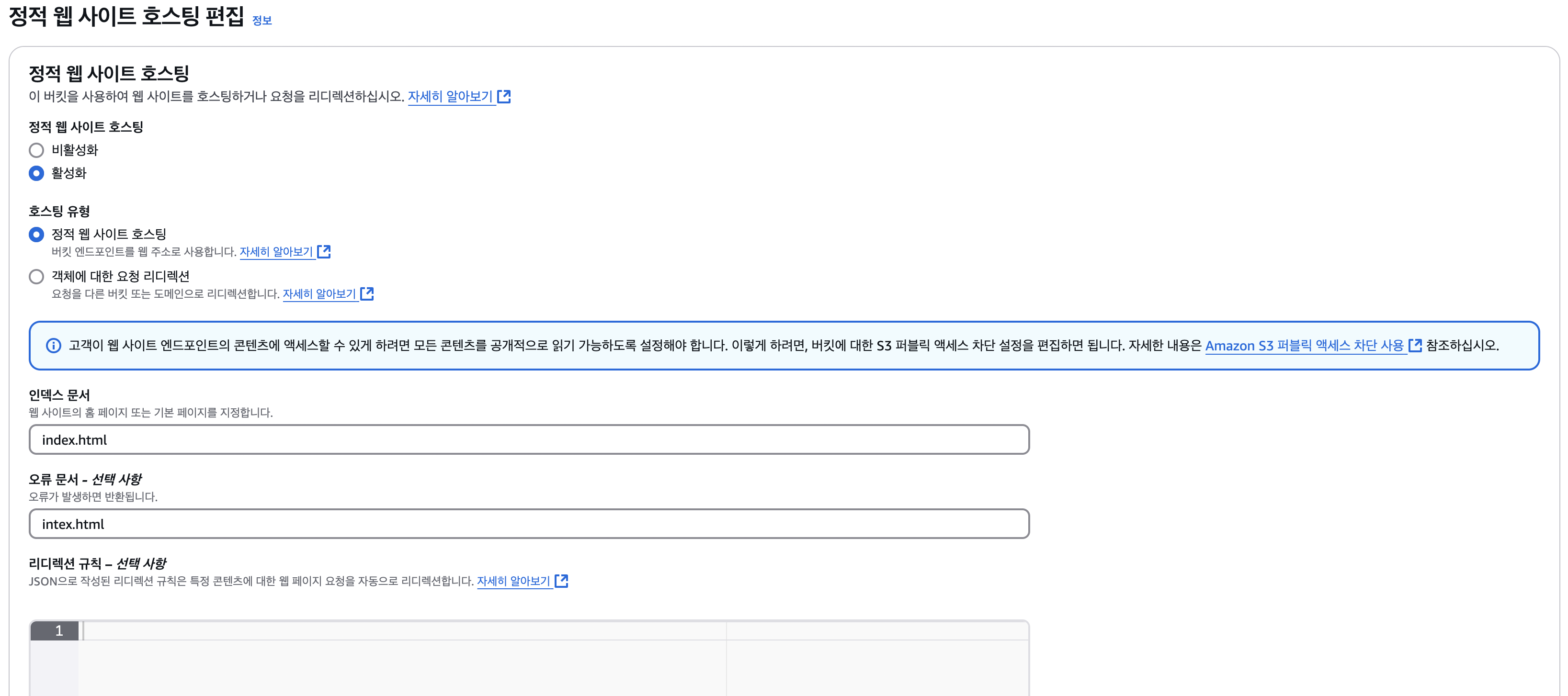 - S3 버킷을 정적 웹 호스팅으로 설정