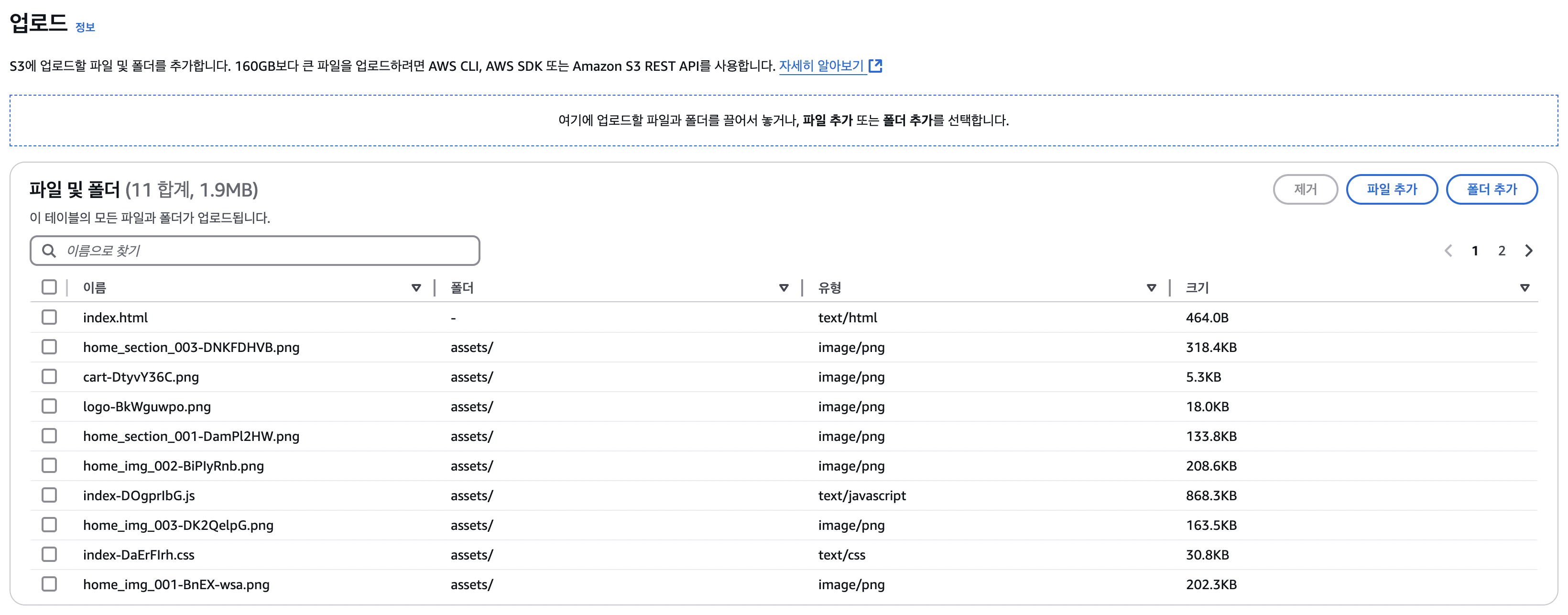 - 만들어진 build/ 폴더 안의 파일들을 AWS S3 버킷에 올림 (HTML, JS, CSS 등)