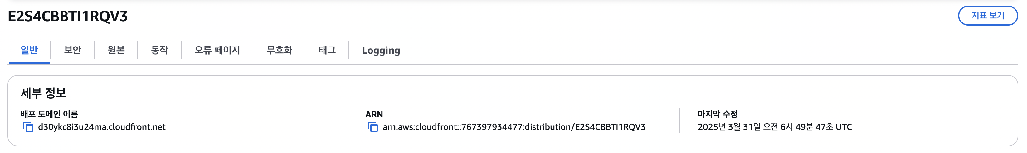 | 리액트 AWS S3 + CloudFront로 배포하기 - 2. 도메인 구매 + Route 53 + ACM 설정 (0) | 2025.03.31 |