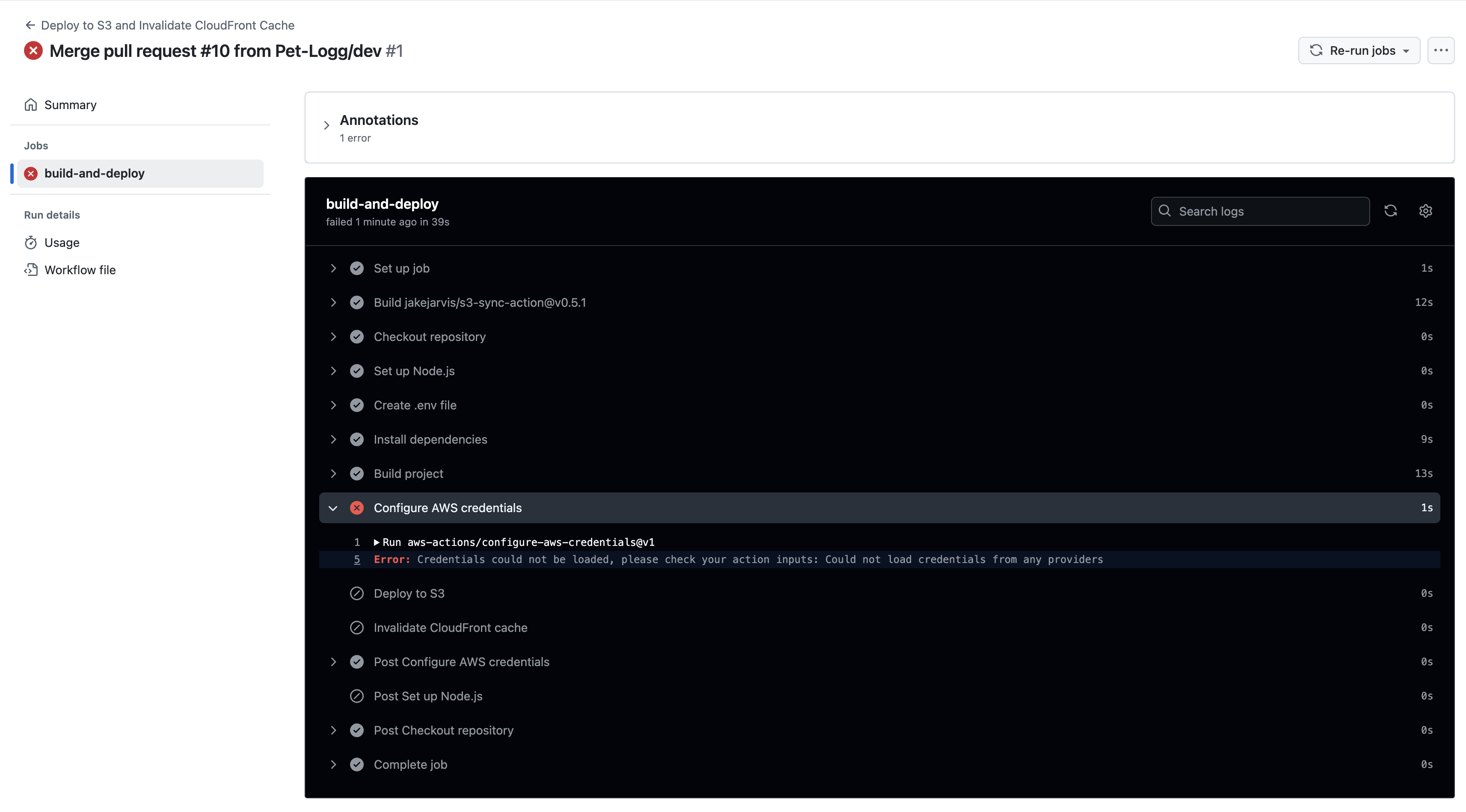 uses: aws-actions/configure-aws-credentials@v1