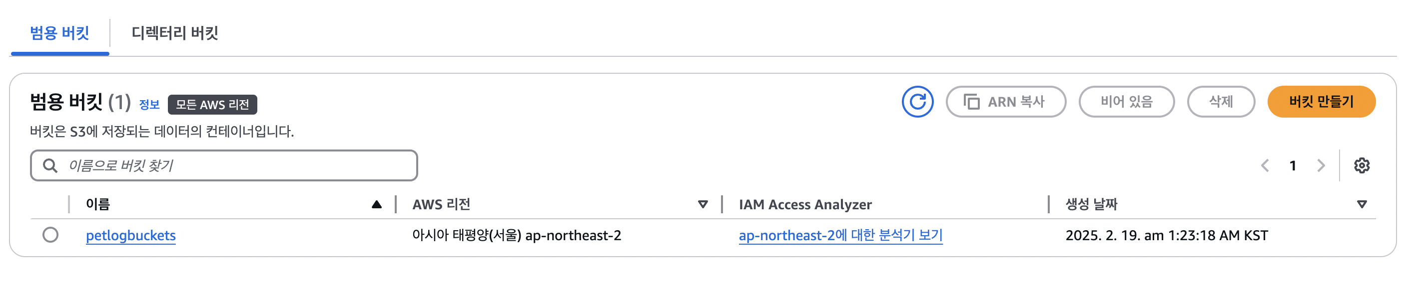 - 버킷은 S3에서 파일(객체)을 저장하는 컨테이너이다.