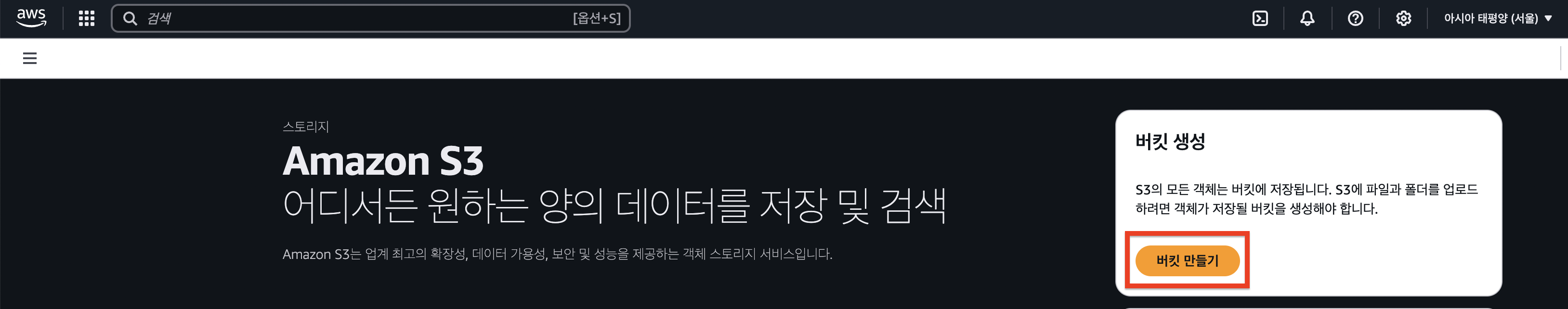 1. AWS S3 접속 > 버킷 만들기 선택